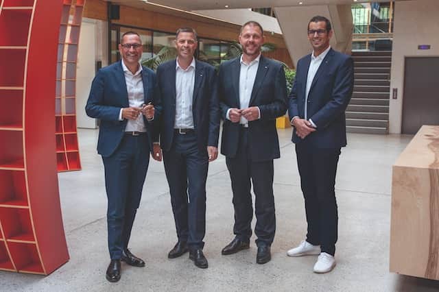 Hannes Mitterweissacher ve Frank Bölling, Thomas Leissing ve Michael Egger Jr. ile birlikte EGGER Grubu’nun yeni yönetim ekibini oluşturuyor.