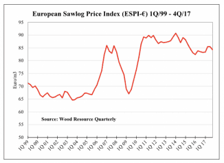 The Global Sawlog Price Index has increased by 9.8% during 2017, with the biggest increases in sawlog prices occurring in the Nordic...