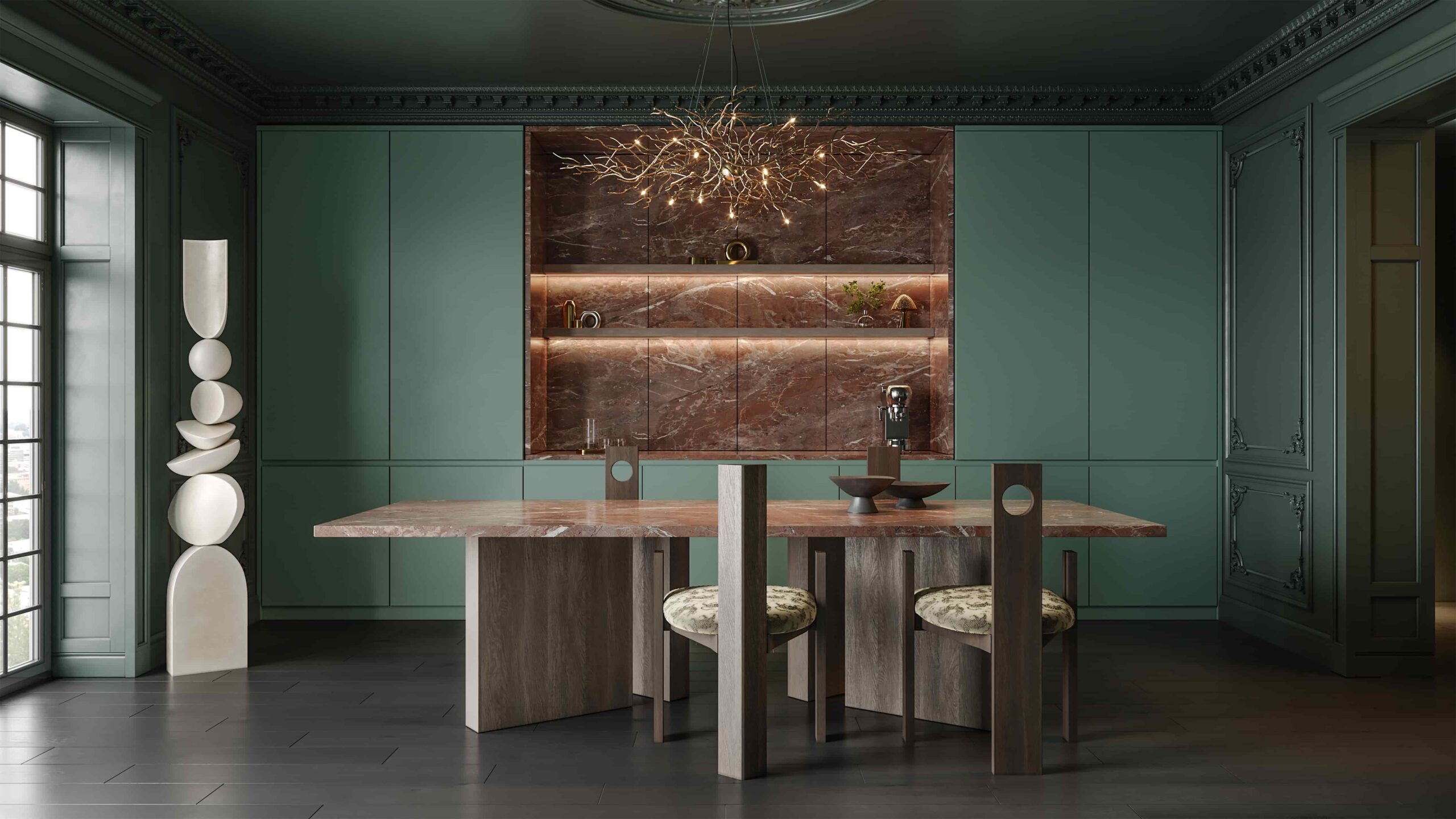 Reflecting this approach, the Glam & Calm Collection unites new and existing colors/patterns across the Mdflam/Suntalam, Door Front Panel, and Lacquered Panel categories under a coherent design language. Like two complementary sides of a whole, Glam and Calm express distinct yet harmonious moods. Glam stands out with sophisticated, bold tones—such as Mystic Mulberry, Cobalt Blue, Cherry Marble, Terra Rosso, and Antique Gold—bringing energetic elegance and depth to spaces. Calm, inspired by nature, creates a serene, balanced atmosphere with tones like Pure Marble, Linden Green, Valley Oak, Zen Travertine, Polar Stone, and Ashen Concrete, carrying tranquility to the heart of living spaces. Together, these two worlds achieve a timeless harmony—much like balance in nature—instilling a sense of rhythm and cohesion on every surface.