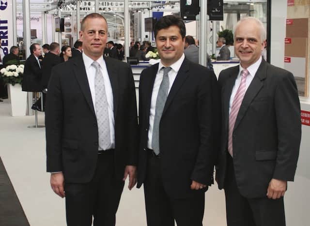 Türk müşterilerin istikrarlı gelişiminden ve 2015 Ligna fuarına faydalı katılımlarından dolayı memnuniyeti gösteren bu fotoğrafta Dr. Achim HUBENER, Serkant ATAK, Wolfgang HORMUTH (Soldan itibaren) yer alıyor.