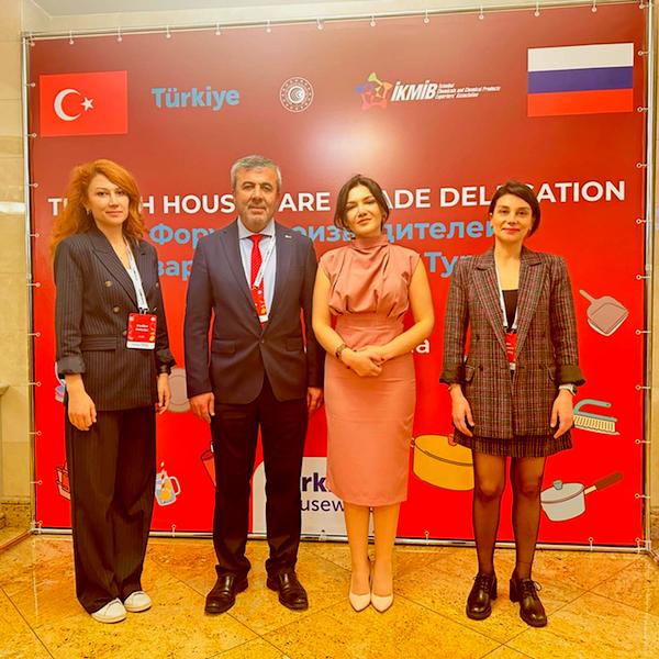Kimya sektörünün ihracatına katkı sağlamak amacıyla pek çok faaliyet gerçekleştiren İKMİB, ev ve mutfak eşyaları sektörüne yönelik 4-7 Haziran 2024 tarihleri arasında “Rusya Ev ve Mutfak Eşyaları Sektörel Ticaret Heyeti”ni gerçekleştirdi. Bu yıl Şubat ayında Kazakistan’a yapılan sektörel ticaret heyetinin ikincisi Haziran ayında Rusya’ya yapıldı. Moskova şehrinde düzenlenen Ev ve Mutfak Eşyaları Sektörel Ticaret Heyeti’ne İKMİB Yönetim Kurulu Üyesi Ali Küçük ve 15 firmadan 21 temsilci katıldı. T.C. Moskova Ticaret Müşaviri Cansu Şaziye Tanrıverdi heyeti ziyaret ederek, pazar hakkında katılımcıları bilgilendirdi.