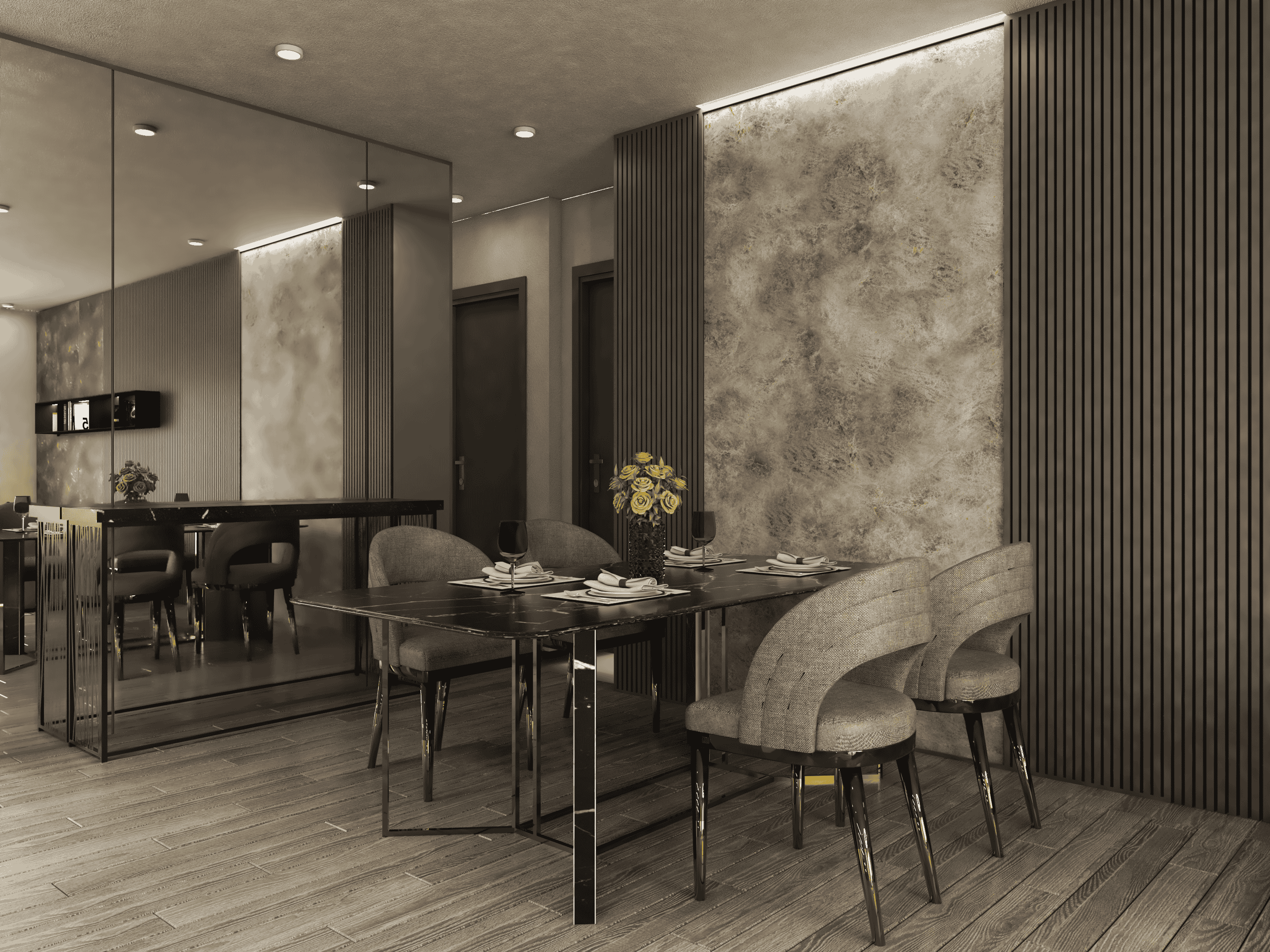 - Dijital baskı yöntemiyle üretilen Bookmatch MDF paneller
