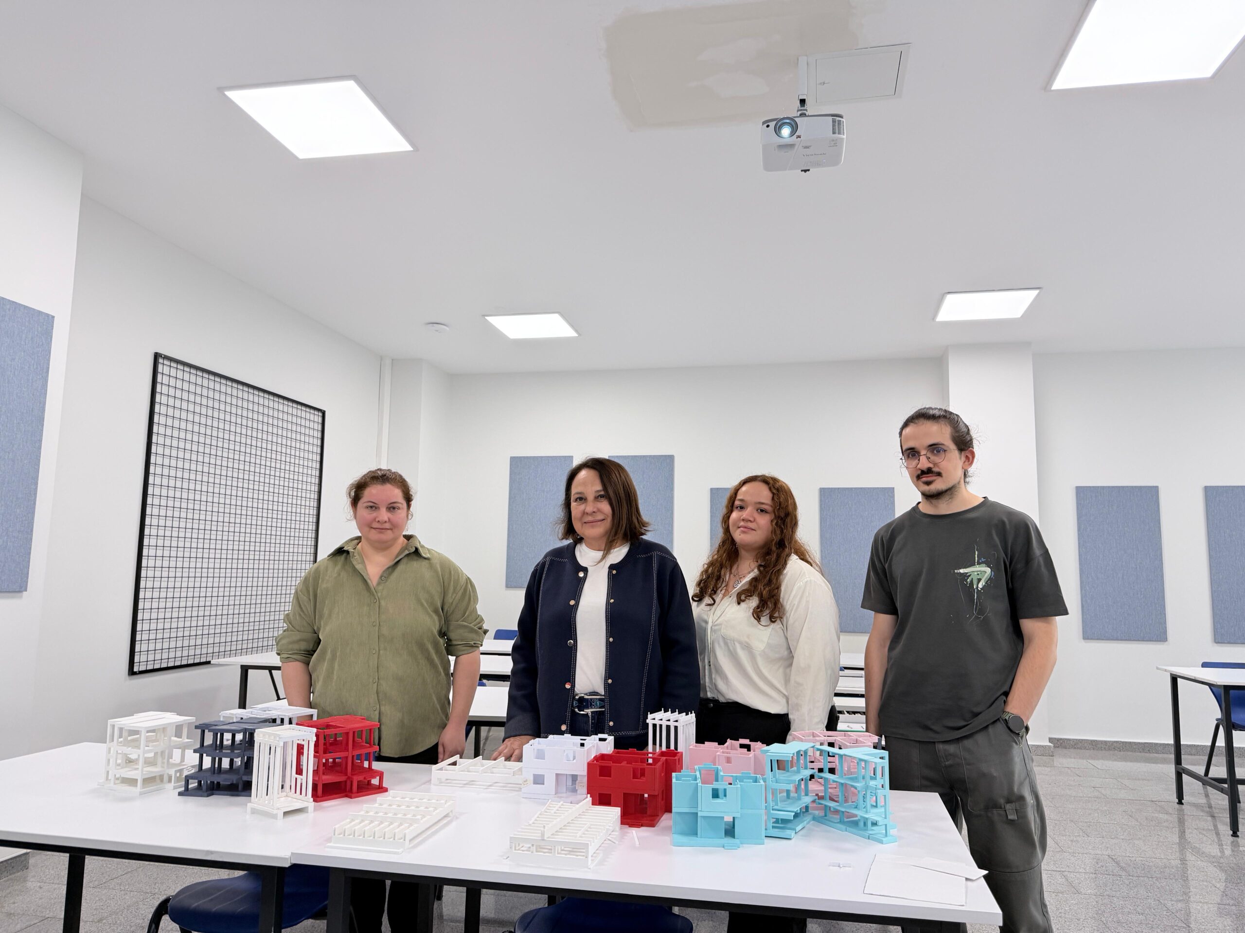 Mimarlık bölümü öğrencilerinin yapı dersleri için geliştirilen 3D yazıcı kitlerle, yapı derslerinde deneyimsel öğrenme fırsatı sağlanıyor. Önce tasarlanan ve ‘oyun’ mantığıyla geliştirilen eğitici ve öğretici kitler, öğrencilerin teknik çizim ve yapısal düşünme becerilerini geliştirmeyi hedefliyor. Mimarlık Bölümü Dr. Öğr. Gör. Esra Karahan geliştirdikleri kitlerle ilgili, “Öğrencilerimizden çok olumlu dönüşler alıyoruz. Maketlerle dersi öğrenirken ‘Aa, öyle miymiş? Çok basit’ diyorlar. Bu da böyle daha asık suratlı bir ders olarak bilinen bizim derslerimiz için çok olumlu bir gelişme. Yani oynayarak, yaparak, somut deneyimleyerek işi kotarmak ve bu dersi eğlenceli hale getirmek de bizim için çok kıymetli bir sonuç oldu” dedi.