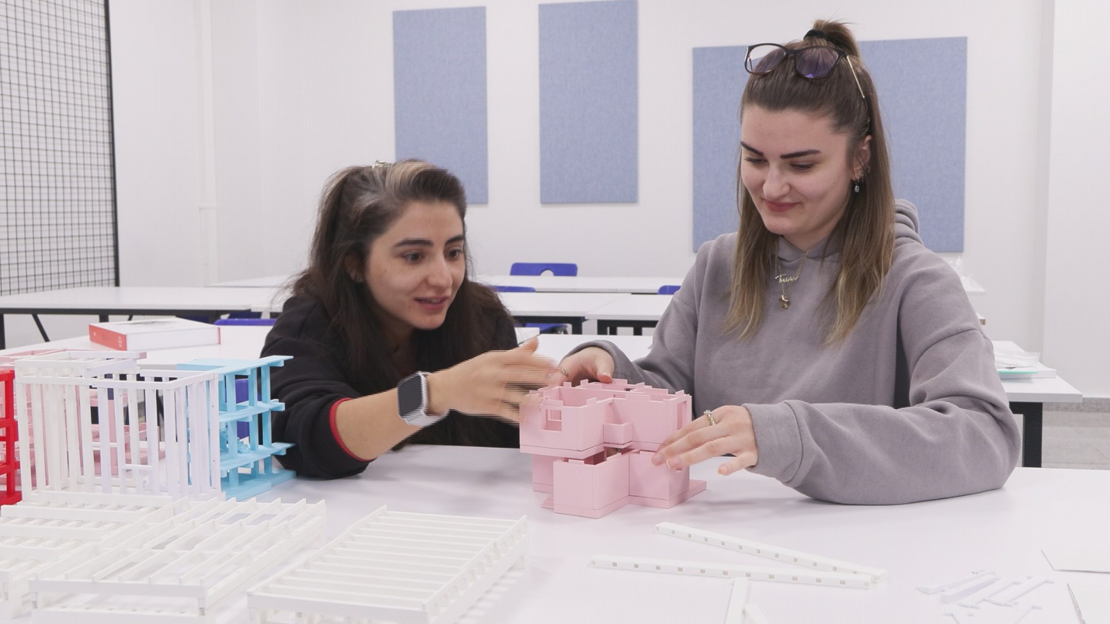 Öğrencilerin bu derste zorlanmaları nedeniyle bir süredir yeni pedagojiler geliştirdiklerini belirterek, “Önce ‘tasarla yap’ pedagojisini entegre ederek yapının sistemlerini, elemanlarını birebir olarak gözlemlemek için bunu derste kullanmaya başladık. Bu çok faydalı oldu ancak çok zaman alan bir süreçti. Biz de şu anda ‘inşa ederek öğrenme’ pedagojisinden, ‘oynayarak öğrenme’ pedagojisine geçtik ve ölçekli maketler üzerinde öğrencilerin sistemleri bir araya getirebileceği şekilde biraz daha özgür alanlar yaratarak her şeyin nasıl bir araya geldiğini gözlemleyebildikleri, farklı sistemlerin, yapı elemanlarının, farklı katmanların nasıl örtüştüğünü gözlemleyebildikleri yeni bir pedagoji geliştirdik. Renkli maketlerimizle de bunu gösteriyoruz aslında” ifadelerini kullandı.