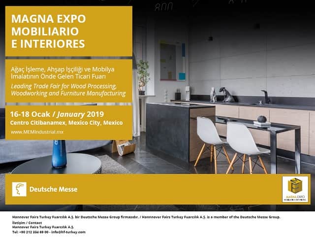 Türkiye’den fuara katılım ile ilgili çalışmaların Hannover Fairs Turkey tarafından yapıldığı Magna Expo Mobiliario e Interiores, 16 – 18 Ocak 2019 tarihlerinde Citibanamex Mexico City’de düzenlenecek.