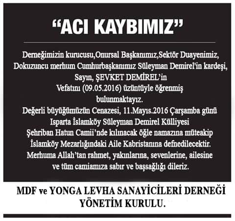 Sayın ŞEVKET DEMİREL’in
